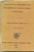 INSTITUTIONAL PROBLEMS IN THE MANAGEMENT OF NIGERIAN URBAN ENVIROMENT