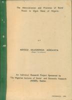 THE ADMINISTRATION AND PROVISION OF RURAL ROADS IN OGUN STATE OF NIGERIA